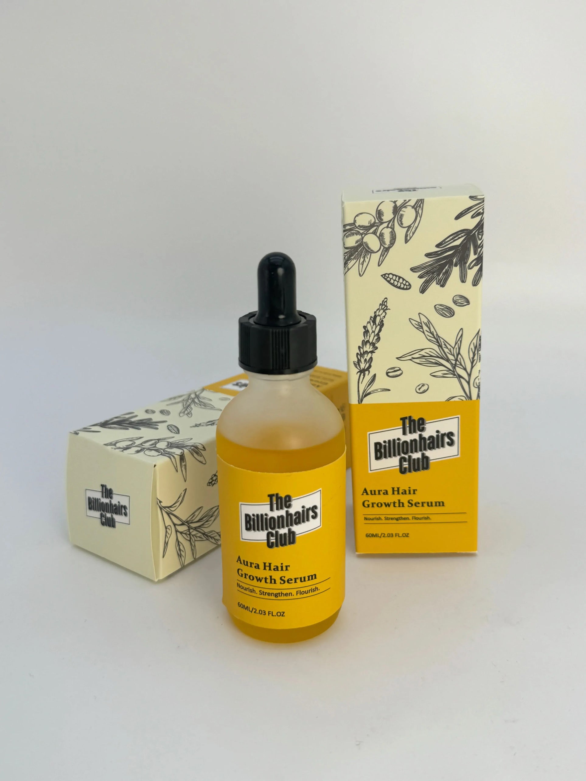 Aura Hair Growth Serum is crafted to honour that legacy. With a blend of rare botanical oils — from resilient baobab and radiant sunflower, to luminous argan and restorative coconut — Aura turns everyday care into a ritual of self-celebration.